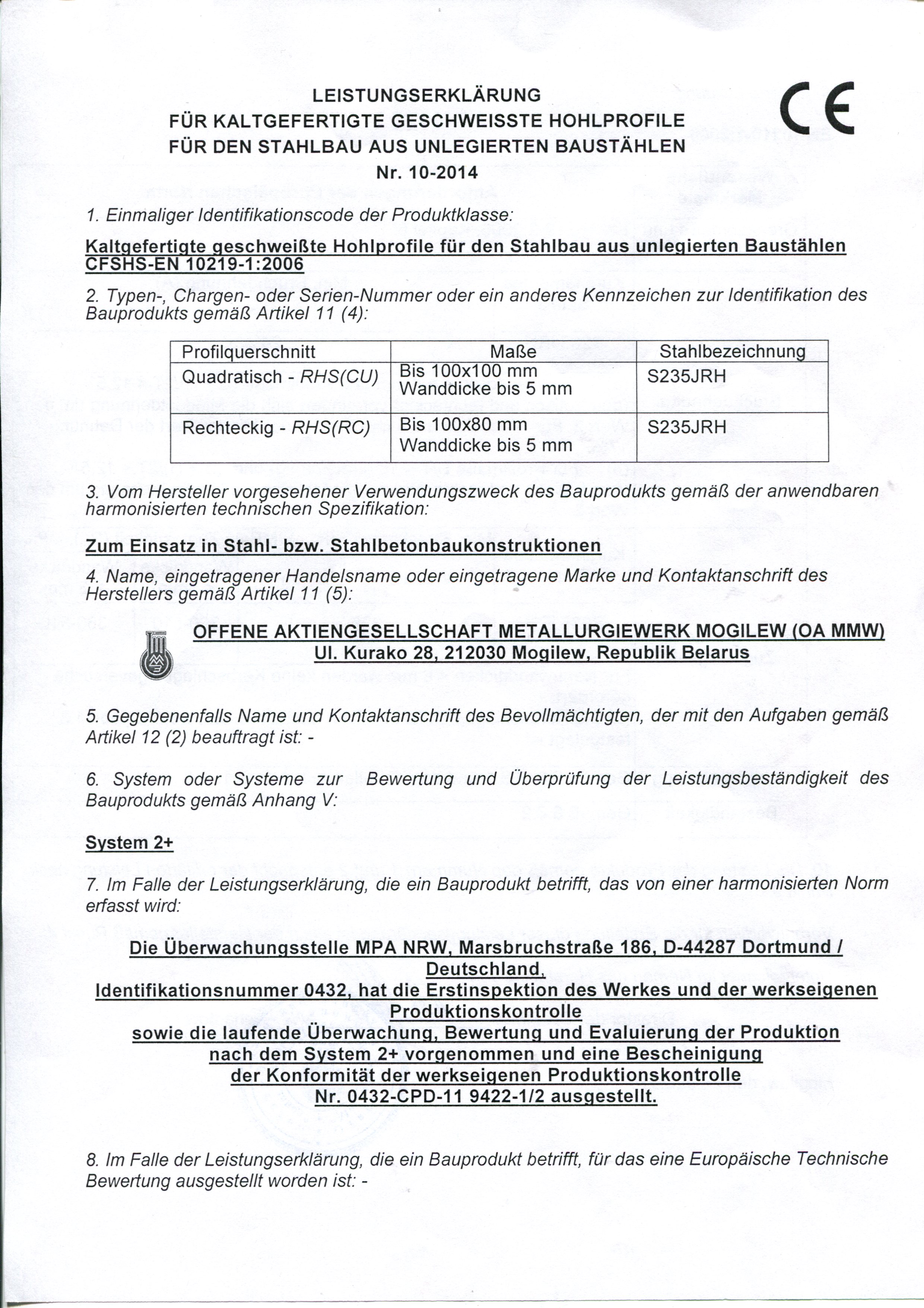 Hier haben Sie nun die Möglichkeit, die aktuellen Leistungserklärungen, der von Ihnen bezogenen Produkte aus Baustahl aufzurufen und herunterzuladen: